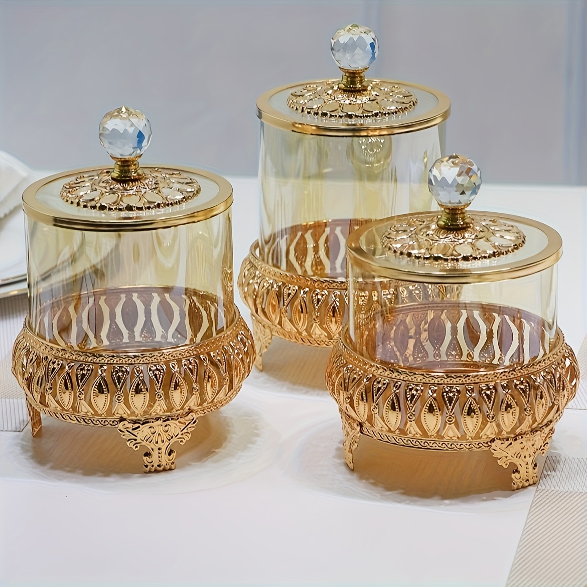 3 Pot à Rangement Multifonctionnel Luxe Doré