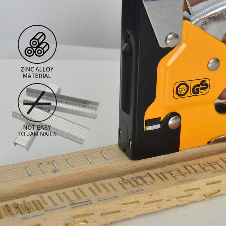 Cette agrafeuse peut accueillir des agrafes de 4 à 14mm. Grâce à sa molette pratique, vous pouvez adapter la profondeur d'enfoncement à la hauteur de pied des agrafes sélectionnées. Ainsi, vous utiliserez les petites agrafes pour un travail minutieux, et les grandes agrafes robustes pour agrafer des matériaux épais, pour fixer du matériau d’isolation par exemple, ou agrafer un tissu épais sur du bois. Entièrement faite en métal, cette agrafeuse solide est munie d'une poignée ergonomique, pour une prise en main agréable et confortable.Force d'entraînement réglable de broches en fil fin de 0,7 mm 11.3 Longueur de la jambe de base : 4-14 mm.La longueur de la poignée est de 11,3 mm