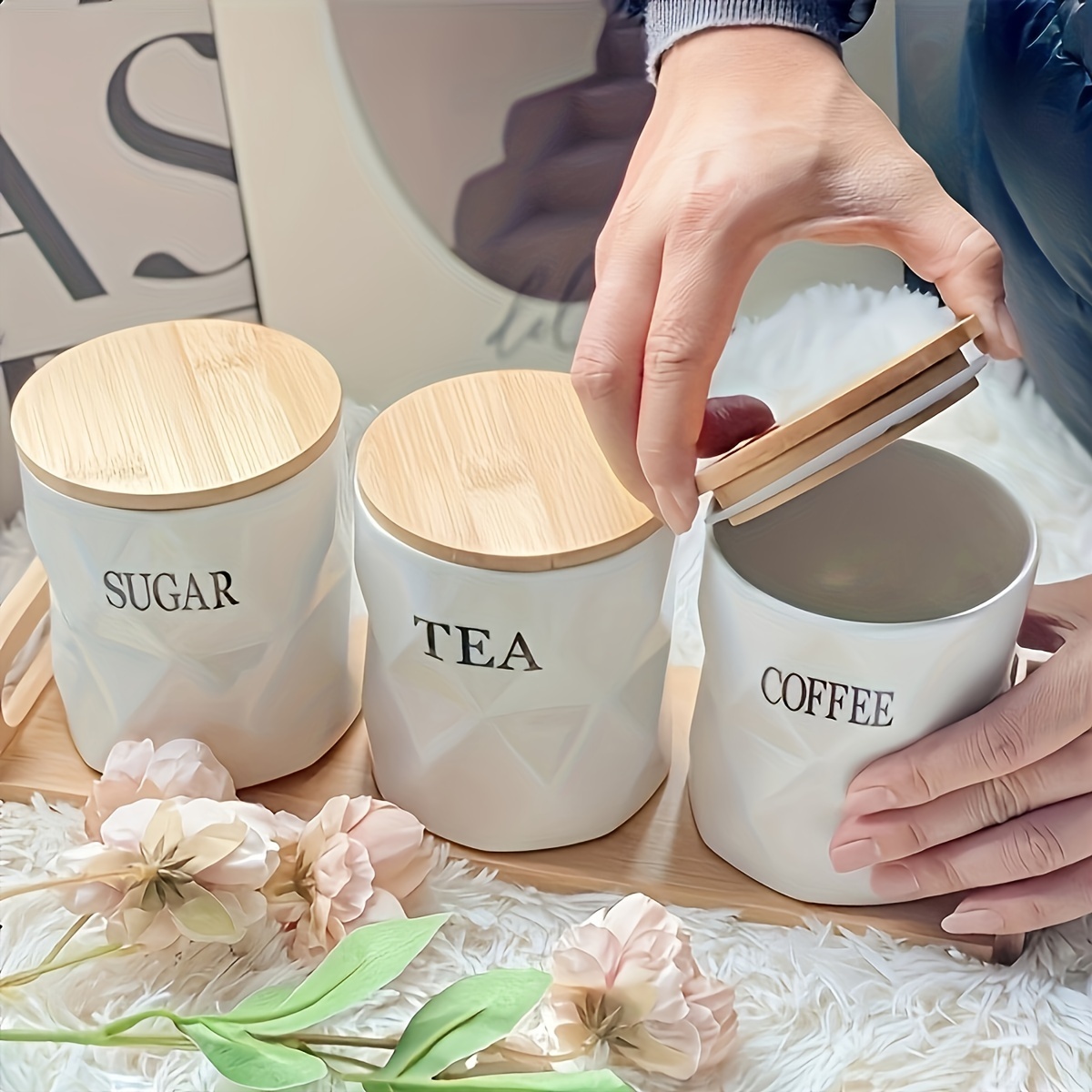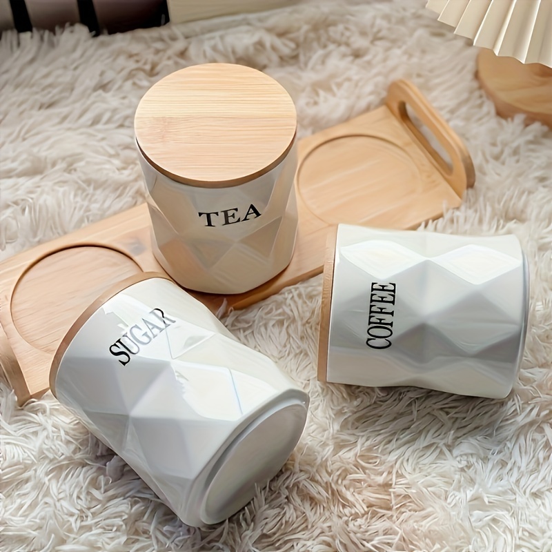 Cette jolie boîte en céramique couleur crème au design pierre, avec son couvercle et son support en bambou naturel, est la solution idéale.Remplissez-la de votre café, thé et sucre préférés et placez-la dans n'importe quel coin de votre cuisine.Ces boîtes apporteront la touche finale naturelle que vous recherchez.L'inscription « Café, Thé et Sucre » sur la boîte vous permettra de trouver facilement ce que vous cherchez et confère à son design une touche sophistiquée.