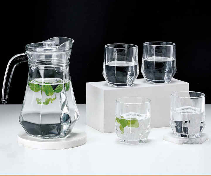 Carafe à Eau - Pichet à eau en verre en forme de cristal avec 6 tasses - 7 Pièces
