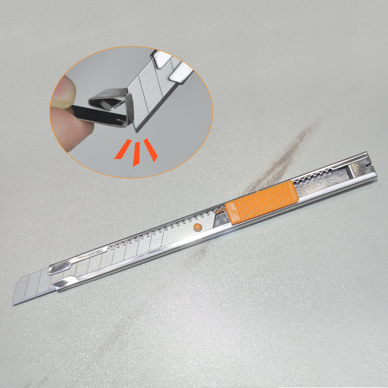 Spécialement fabriqué à base d'aluminium de haute qualité, il est équipé d'une lame rétractable et suffisamment tranchante offrant le plus de précision possible. Il est également doté d'un système de verrouillage automatique, permettant de limiter d'éventuels risques de blessure en cas de rupture de la lame.