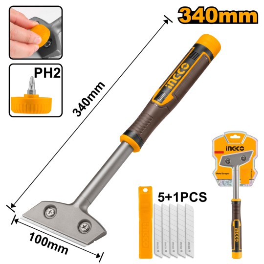 Grattoir Vitre 340mm avec 5 Lames - INGCO