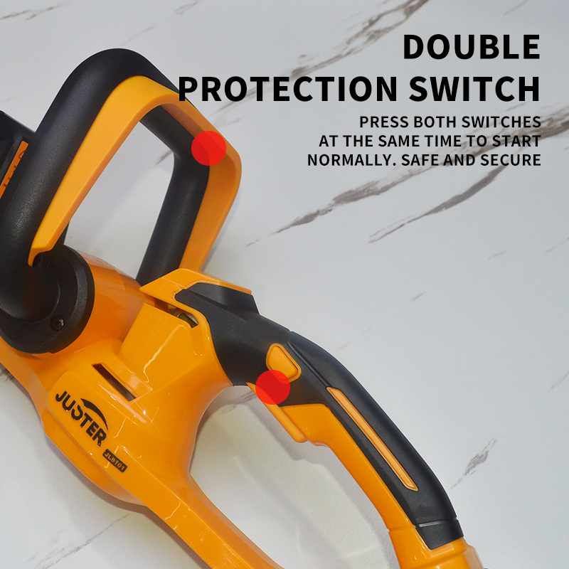 Le taille-haies électrique JUSTER , puissant et performant, vous aide à tailler les grandes haies sans effort. Le taille-haies est bien équilibré, ce qui vous permet de le guider de manière optimale, même en cas d'utilisation prolongée. Il tient confortablement dans votre main dans n'importe quelle position de coupe, grâce à la poignée ergonomique . Ceci est particulièrement utile pour la coupe des sections latérales de la haie. Le bouton de démarrage situé dans la poignée rend l'utilisation intuitive et les lames de précision découpées au laser vous permettent de couper rapidement et facilement avec peu d'effort. Grâce à ces caractéristiques de conception utiles, vous obtenez une coupe efficace et propre des brindilles et des branches.