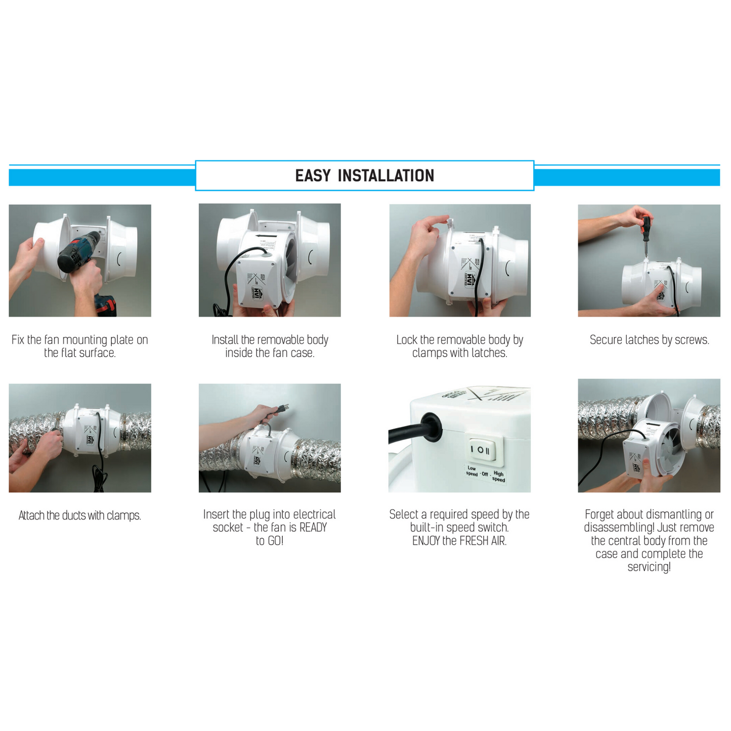 Grâce à leurs performances impressionnantes, les ventilateurs assurent une capacité de ventilation maximale allant jusqu'à 1069 pi³/min. Disponibles en conduits de 4 po à 12 3/8 po. Solution idéale pour les salles de bains, les cuisines, les appartements, les restaurants, les usines et bien plus encore.